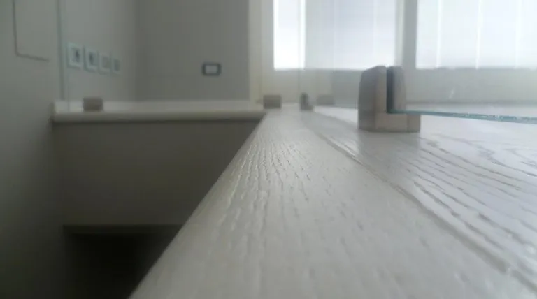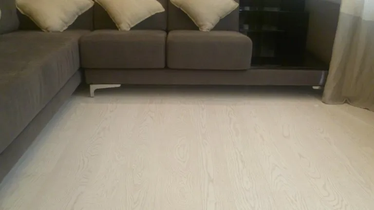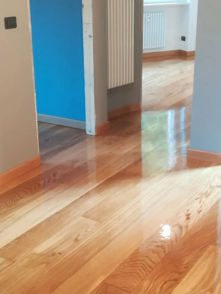spazzolato, bisellato, scelta natur accurata. Materiale prodotto interamente in Italia con particolare del battiscopa laccato bianco modello ducale.